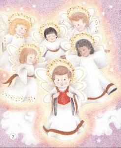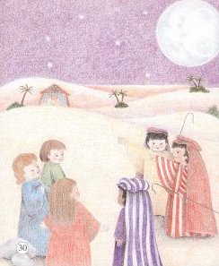 That very night that Jesus was born, some shepherds were watching their flock of sheep in the fields.  Suddenly, Karen, an angel of the Lord stood before them.  The glory of the Lord shone around them, and they were really afraid.